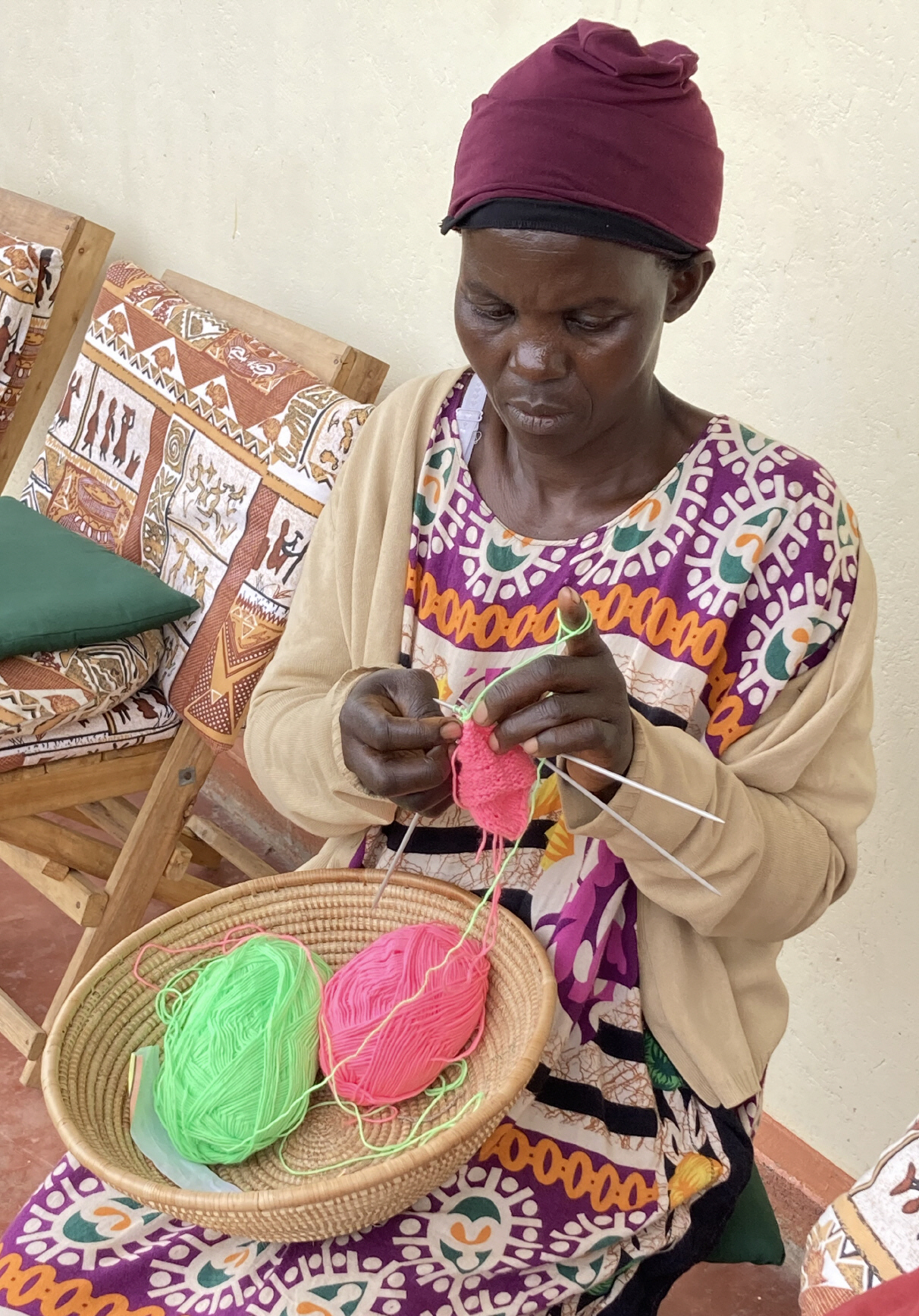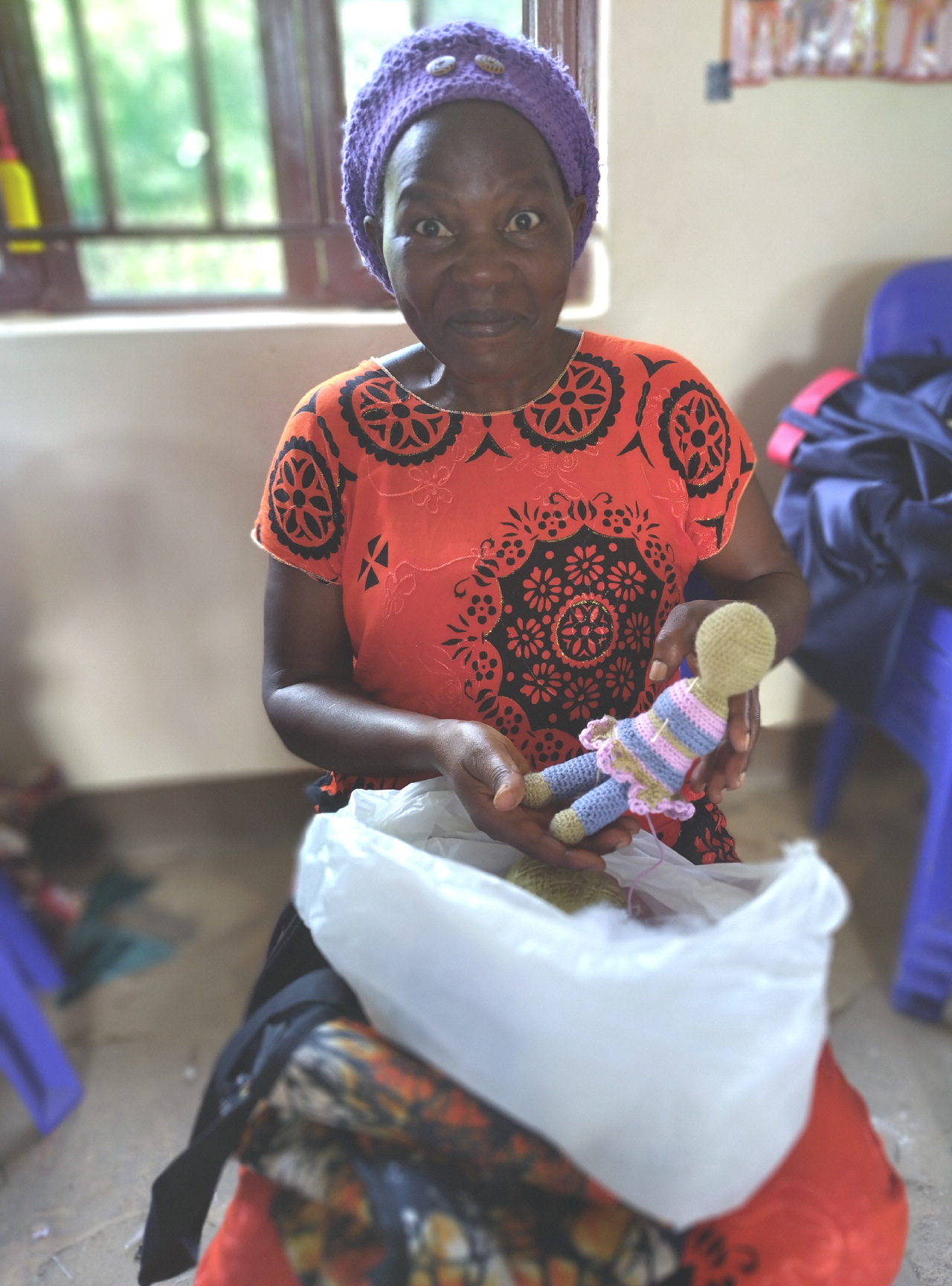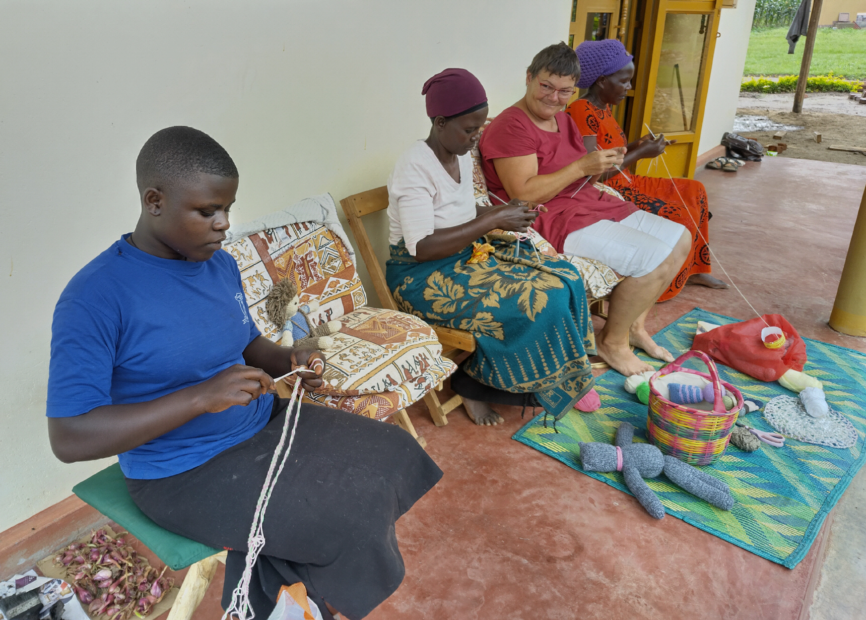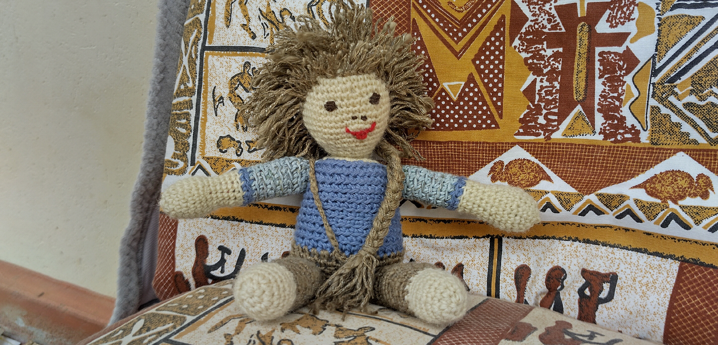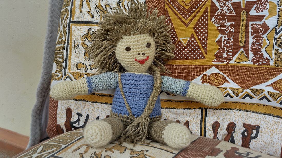 Diesmal hat es für etwas mehr gereicht. Zwei der Frauen haben gelernt Rundum zu stricken. Zur Freude von Allen, haben sie auch gelernt eine kleine Puppe zu häckeln.