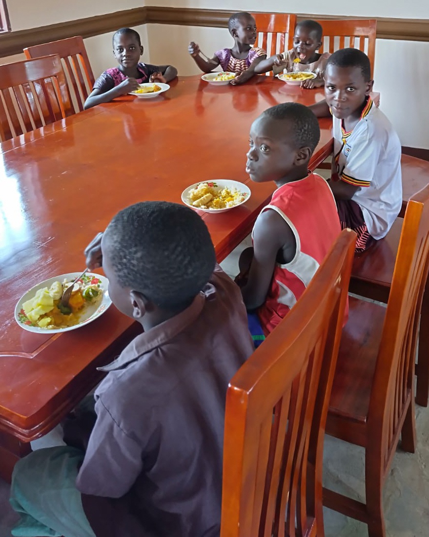Die Familien in Bulyakamu haben nie ein solch ausgewogenes Essen für sich selber. Obwohl alles davon in ihren Gärten wächst, müssen die Menschen ihre wertvollen Ernten verkaufen um Geld zu verdienen. Laufende Kosten wie Medizin, Schulgelder, Schulmaterial, Kleider und Transportkosten müssen damit gedeckt werden. Die Bauernfamilien können für sich selbst nur das Gemüse selber verwerten und essen weiches auf dem Markt nicht verkauft werden kann.