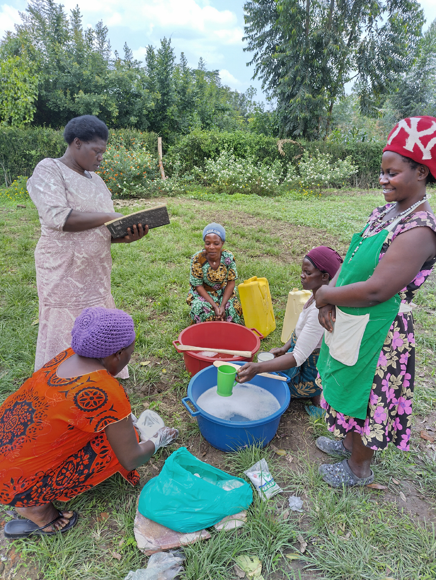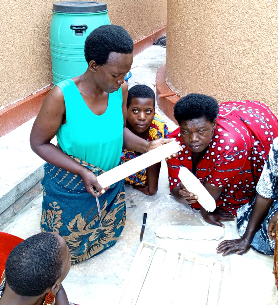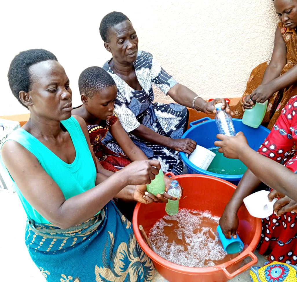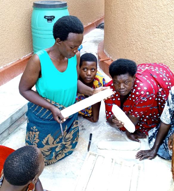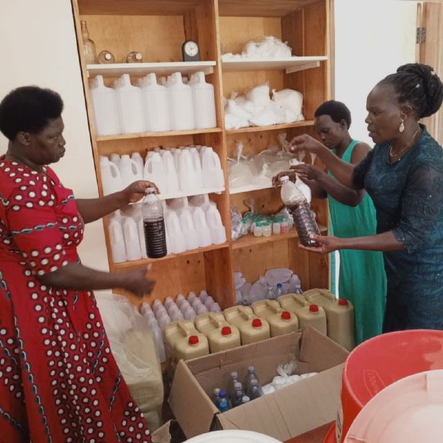 In einem Gesundheitsseminar lernten die Mwebale Nnyo Frauen Seife herstellen. Die Zutaten dazu müssen in der Haupstadt Kampala, welche 6 Fahrstunden von Bulyakamu entfernt ist, eingekauft werden. Die Transportkosten sind sehr hoch, der Profit klein.